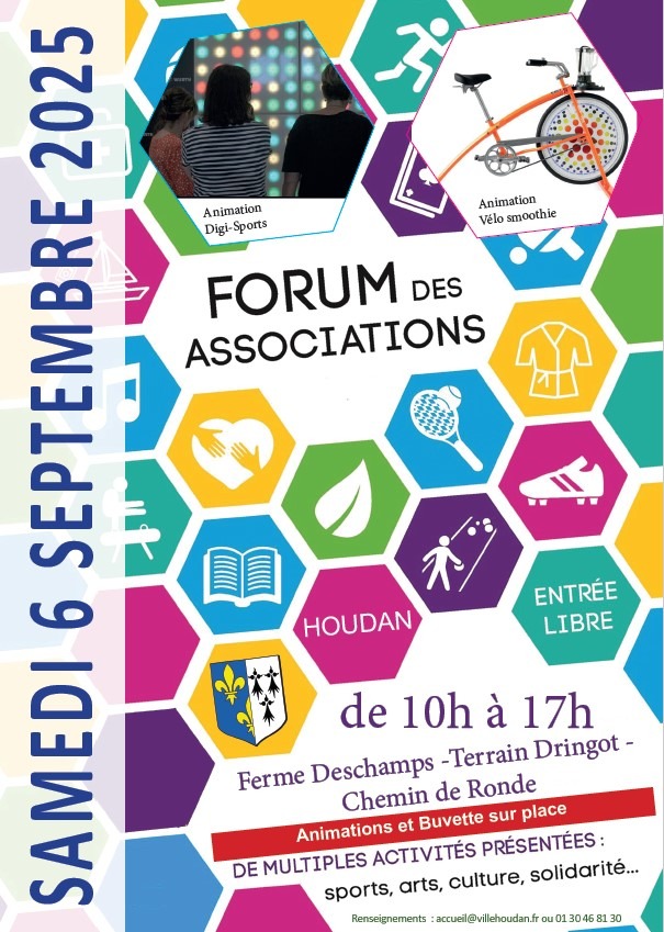 Le forum des associations de Houdan aura lieu le samedi 6 septembre de 10h à 17h au terrain Dringot et à la Ferme Deschamps, à Houdan.