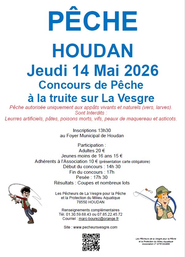 L'Association les Pêcheurs de la Vesgre vous invite à un concours de pêche à la truite sur La Vesgre, le jeudi 14 mai de 13h30 à 18h.