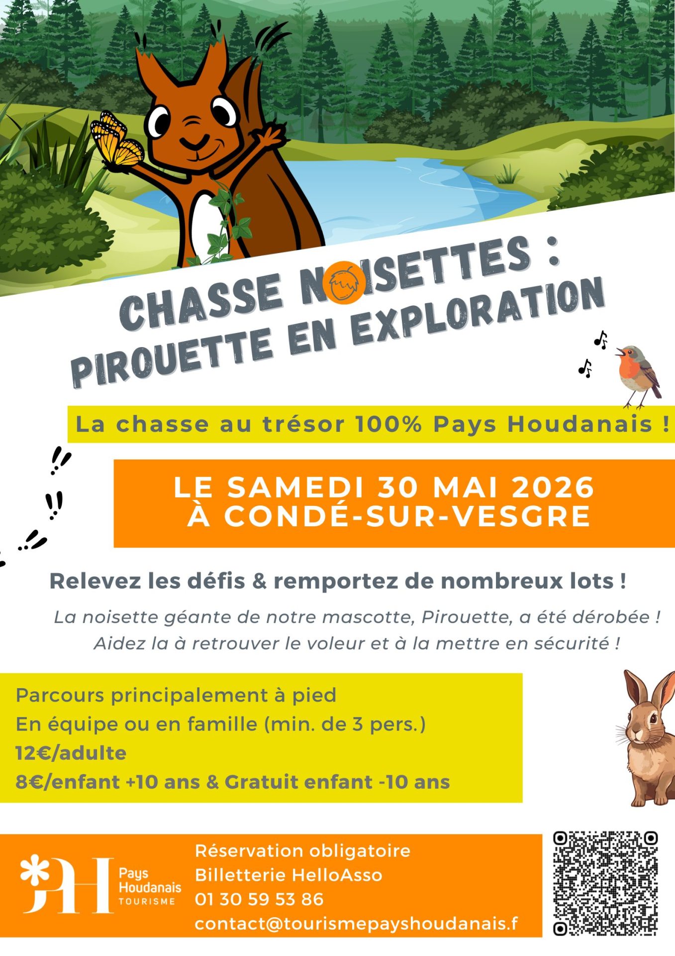 La chasse au trésor de l’Office de Tourisme du Pays Houdanais revient pour une nouvelle édition le samedi 30 mai prochain dans la commune de Condé-sur-Vesgre ! Chasse Noisettes se met cette année au vert avec un grand jeu de piste sur le thème de la nature et du patrimoine local de la commune de Condé-sur-Vesgre !